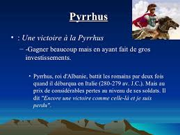 Pour celles et ceux qui ne connaissent pas l’histoire, en 280 avant JC, le Roi d’Epire infligea une sévère défaite aux légions romaines